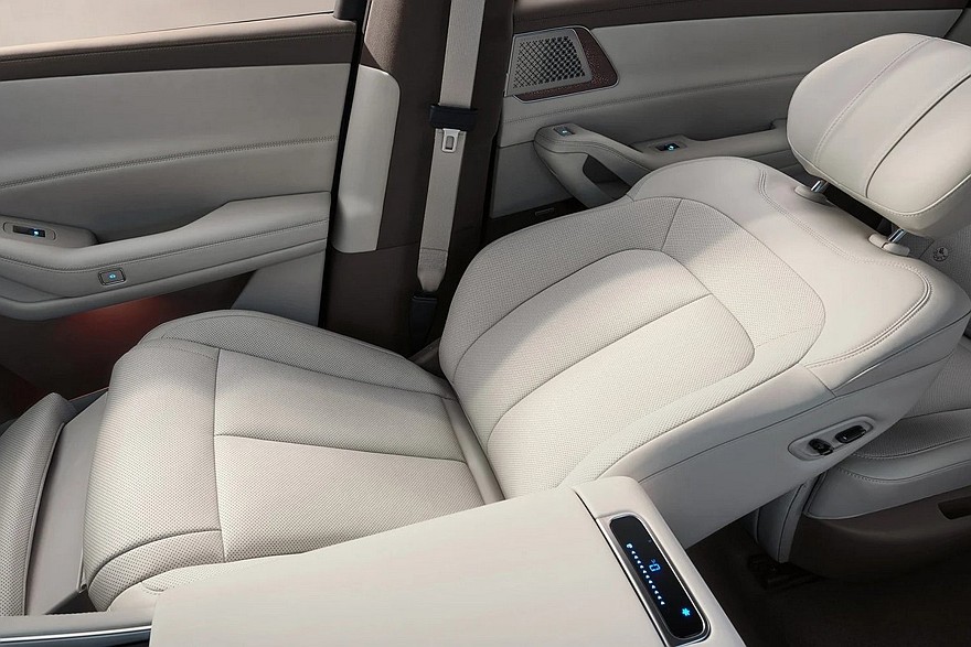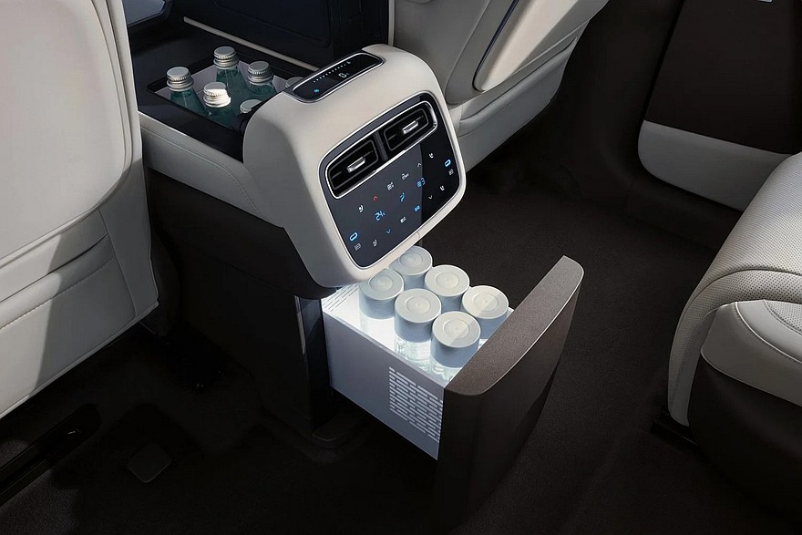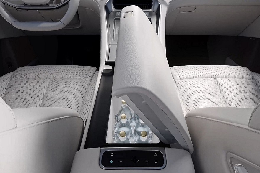 Вторая версия – это также проекционный дисплей с дополненной реальностью, планшет на 17,3 дюйма для задних пассажиров (крепится к потолку), правое кресло второго ряда с подставкой для ног. Любопытно, что заявленные в сертификате дроны, способные осуществлять фото- и видеосъемку, для модели пока не предусмотрены. Зато есть камера для селфи, выезжающая из передней панели.