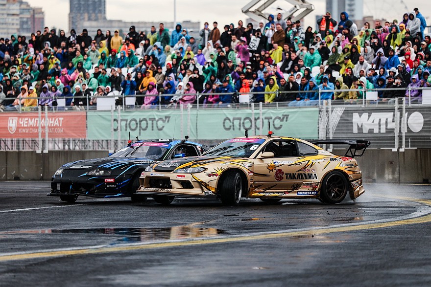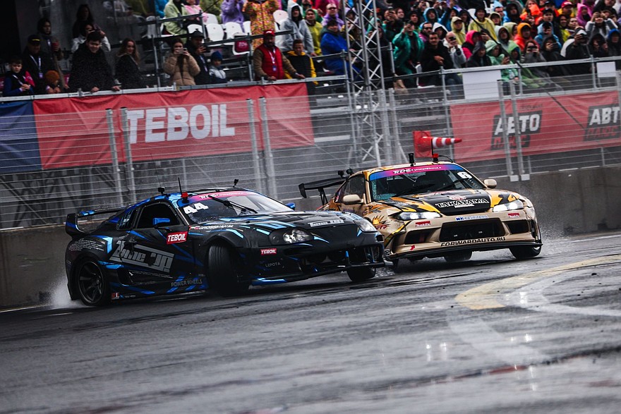 Квалификация прошла посуху, но парные заезды традиционно для этого сезона Российской Дрифт Серии без осадков не обошлись. Дождь сопровождал всю соревновательную программу воскресенья, так что покрытие трассы было не просто влажным, а местами представляло собой внушительные лужи. Пилотам пришлось адаптироваться под нестабильное состояние асфальта, и справиться с этим удалось не всем.