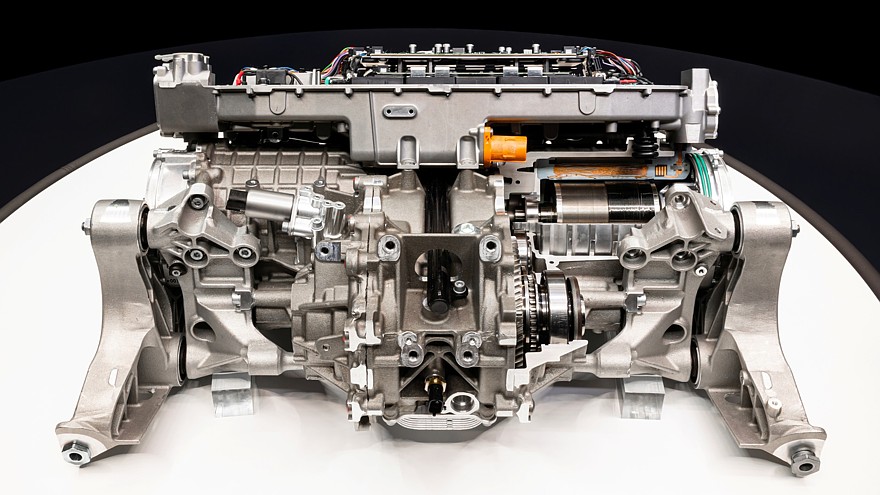Синхронные электромоторы с постоянными магнитами Ferrari разработала сама, всего их четыре — по одному на каждое колесо. Передний силовой модуль, в сущности, такой же, как у гибридного суперкара Ferrari F80, максимальная совокупная мощность двух его электромоторов — 210 кВт (285,5 л.с.), пиковый крутящий момент на колёсах — 3500 Нм, весит этот модуль со всей силовой электроникой и редуктором 65 кг.