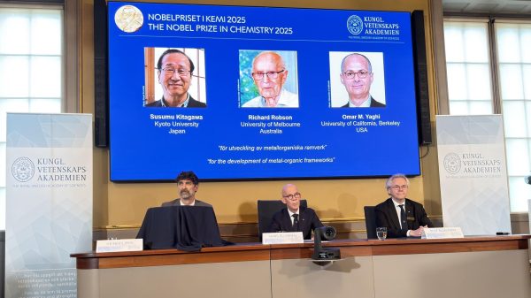 МОСКВА, 8 окт. Нобелевскую премию по химии присудили японцу Сусуму Китагаве, британцу Ричарду Робсону и иорданцу Омару Ягхи за работы по металлоорганическим соединениям.«Сусуму Китагава,...