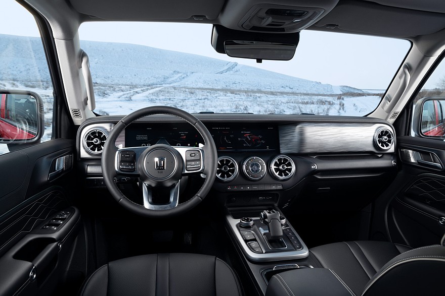 Ещё в списке обновок, причём для всех комплектаций, числится альтернативная отделка интерьера в красно-чёрной гамме. Фотографий такого салона российский офис GWM пока, к сожалению, не предоставил. Сообщается, что у машин в комплектациях Premium и City Premium потолок и стойки кузова изнутри выполнены в тёмно-сером цвете. Помимо этого, посвежевшему Tank 300 досталось новое оформление виртуального щитка приборов: теперь показания спидометра и тахометра будут отображаться на классических круглых циферблатах.