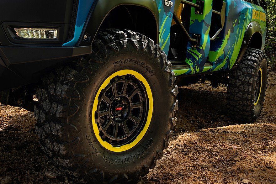 Подвеску и оси концепт получил от Nissan Titan, кроме того, его снабдили «трубчатыми» дверями, которые дают «ощущение пребывания на открытом воздухе». Также в списке «обновок» – прикрученные пластиковые накладки на колёсные арки, массивный передний бампер с буксировочными проушинами и иной задний – с подножками по центру и по бокам. Frontier Rapid Runner оснастили переносным душем, местом для хранения гидрокостюмов, а в салоне предусмотрены водонепроницаемые чехлы для сидений.