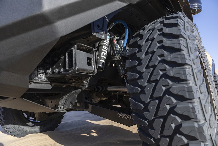 Разработчики снабдили Dune Patrol гоночной подвеской с увеличенным ходом, расширенными крыльями и 18-дюймовыми колёсными дисками Nismo Axis с бедлоками. «Катки» обуты в 37-дюймовые внедорожные шины Yokohama Geolander M/T G003. Ещё этот автомобиль получил стальные бамперы, дополнительную светотехнику, большой багажник на крыше с ящиками для хранения вещей и антенну дальней радиосвязи.
