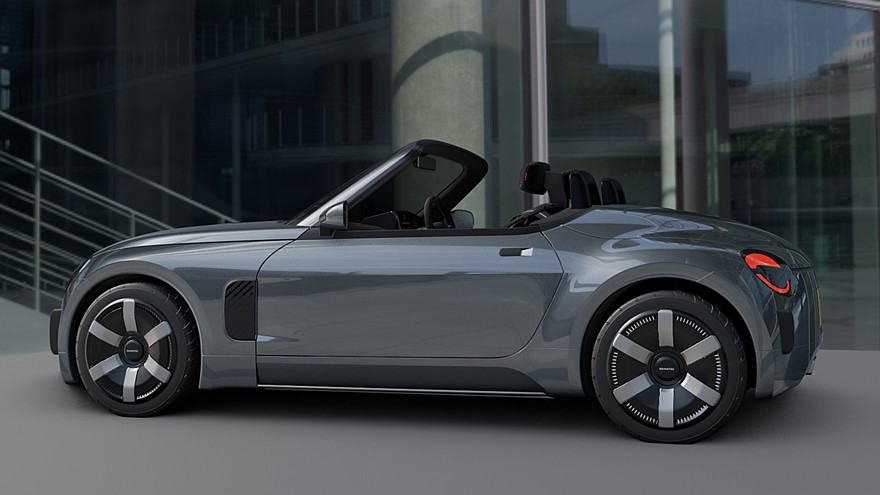 В салоне двухместного родстера можно увидеть круплое трёхспицевое рулевое колесо с красной «нулевой отметкой», а за ним на передней панели расположен изогнутый дисплей, исполняющий роль виртуального щитка приборов. Привычного тачскрина информационно-развлекательной системы нет, но есть панель с кнопками для управления рядом функций автомобиля. Дверные ручки с внутренней стороны заменены на тканевые петли.