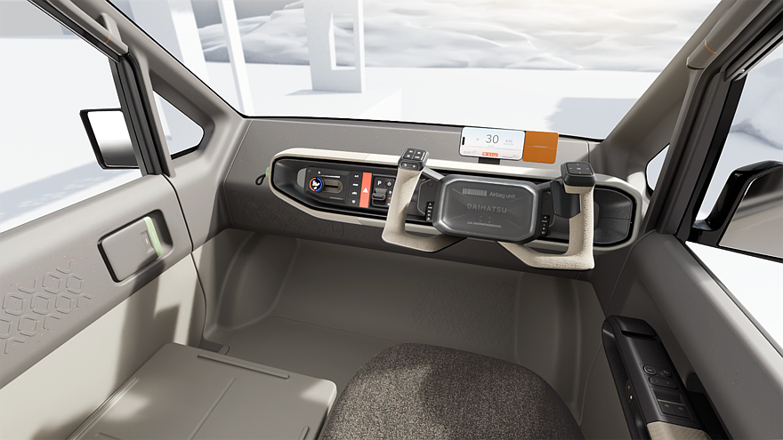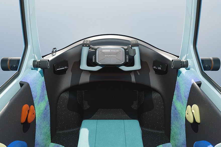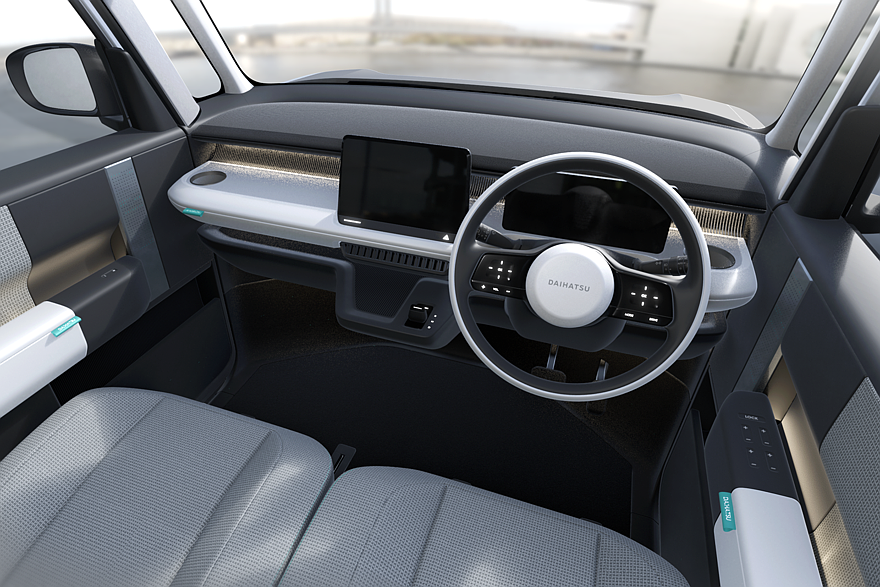 Daihatsu также показала в рамках Japan Mobility Show шоу-кар под названием K-Vision. Этот концептуальный кей-кар, базирующийся на платформе DNGA, оснащается подзаряжаемой гибридной силовой установкой. Автомобиль имеет двухобъёмный кузов, светодиодную головную оптику с «O-образным» рисунком (и вторящие фарам фонари на корме), большой воздухозаборник, обычные наружные зеркала и распашные двери. Официальной информации о серийных перспективах этой новинки пока нет, но выглядит она практически готовой к производству.