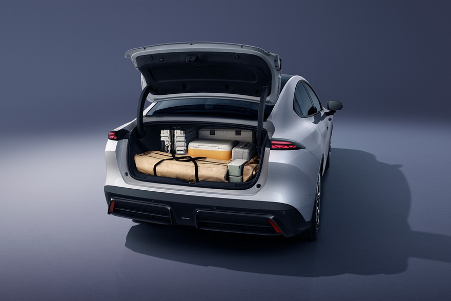 Длина новинки равна 4830 мм, ширина – 1905 мм, высота – 1480 мм, колесная база – 2900 мм. Модели положены 18- или 19-дюймовые диски. Объем багажника составляет 464 литра. Седан дебютировал в виде электрокара, так что спереди есть дополнительный отсек на 100 литров.