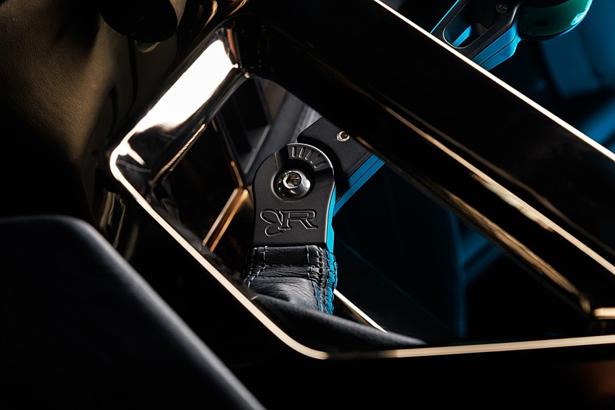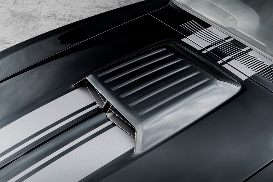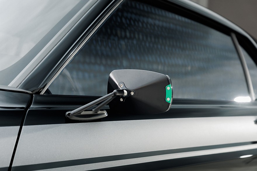 В подвеске рестомода «по кругу» установлены регулируемые амортизаторы Fox RS SV, толстый передний стабилизатор поперечной устойчивости позаимствован у Corvette C6. Кованые колёса HRE Vintage Series 517 обуты в широченные шины Michelin Pilot Sport 4S, размерность передних — 295/35 R 19, задних — 345/30 R 20. За спицами колёс видны огромные дисковые тормоза с насечками и суппортами Brembo (спереди — 6-поршневые, сзади — 4-поршневые).