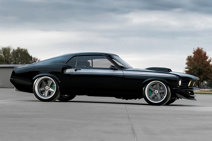Американское тюнинг-ателье Ringbrothers из деревни Спринг-Грин в штате Висконсин представило в рамках проходящей сейчас в Лас-Вегасе выставки SEMA рестомод Kingpin в бандитском стиле на базе классического масл-кара Ford Mustang Mach 1 образца 1969 года. От донорской машины в Kingpin остался, по сути, только образ, потому что кузов сильно перекроен, а техническая начинка и вовсе полностью новая.