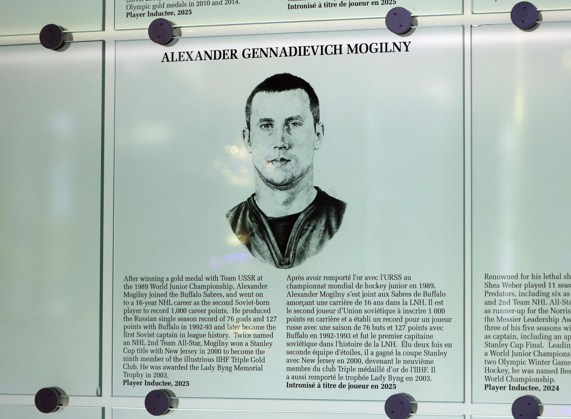 «»Его побег — история, которая сама по себе является фильмом. Для того, что он совершил, потребовалось огромное мужество. Он был первопроходцем, благодаря которому раз и навсегда стали возможными приезд российских игроков в НХЛ и их формирование в этой лиге. Невероятная история. История, которя для самого Александра, — это самый настоящий фильм», — цитирует пресс-служба НХЛ члена Зала славы и партнера Могильного по «Баффало» Пэта Лафонтейна.