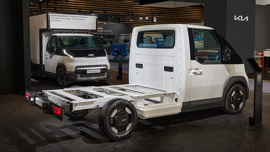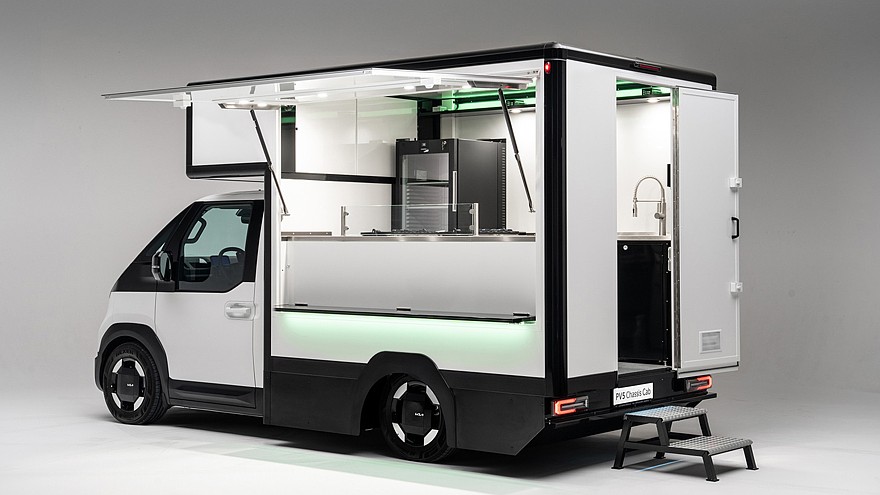 Отметим, на прошлой неделе компания опубликовала лишь один малоинформативный тизер, а теперь модель рассекречена полностью. Презентация шасси Kia PV5 прошла в рамках выставки Solutrans-2025, которая сейчас идёт в Лионе (Франция). В роли экспонатов выступили модификации с платформой без надстроек, фургон для доставки продуктов, а также полноценный фудтрак, который разработчики наделили всем необходимым для приготовления и продажи стритфуда. Доступны и другие надстройки: платформа с откидными бортами, самосвал, рефрижераторный фургон и т.д.