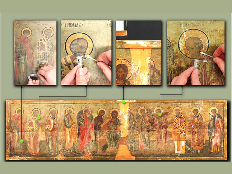 На следующем этапе работы ученым предстоит опробовать действие антисептиков непосредственно на живописных материалах. Это также будет проведено сначала на макетах. Лучшее соединение будет использовано для последующей обработки иконы «Деисус из 13 фигур».