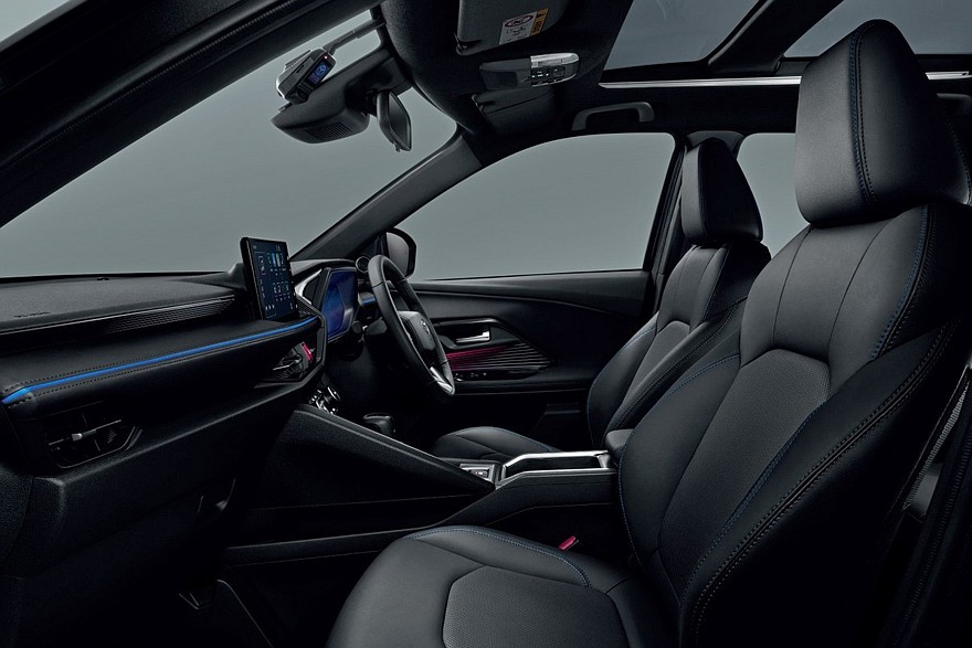 В салоне – обивка из черной «экокожи». Спецверсия сделана на базе самой богатой комплектации, так что у нее «полный фарш». В списке оборудования Yaris Cross Nightshade значатся: панорамная крыша, мультимедиа-система с планшетом диагональю 10,1 дюйма, климат-контроль, беспроводная зарядка для смартфона, камеры кругового обзора, адаптивный круиз-контроль и система удержания в полосе.
