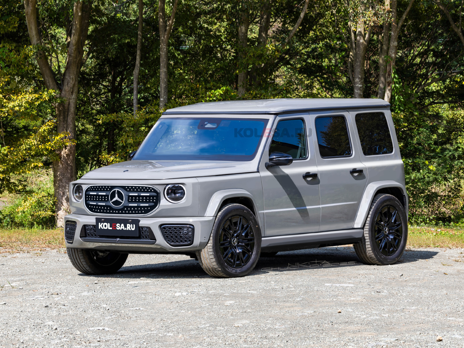 В прототипах нового внедорожника безошибочно узнаётся нынешний G-класс, при этом видно, что кузов здесь полностью оригинальный. Прежде всего, он выглядит более компактным и даже напоминает пятидверный Suzuki Jimny, хотя в реальности по габаритам он должен быть ближе к «старшему» Гелендвагену. Спереди хорошо знакомые круглые фары с кольцеобразными ходовыми огнями, при этом здесь они явно крупнее. Решётка и бампер пока скрыты под толстым слоем маскировки, поэтому мы изобразили один из возможных вариантов оформления. Сбоку у новинки хорошо знакомые скруглённые окна, лобовое стекло также сделано почти вертикальным, но всё же имеет больший угол наклона по сравнению с нынешним G-классом. Максимальная схожесть прослеживается и сзади: здесь практически такие же фонари с С-образными габаритными огнями, запасное колесо либо багажный кофр на крышке багажника, а ниша номерного знака встроена в бампер.