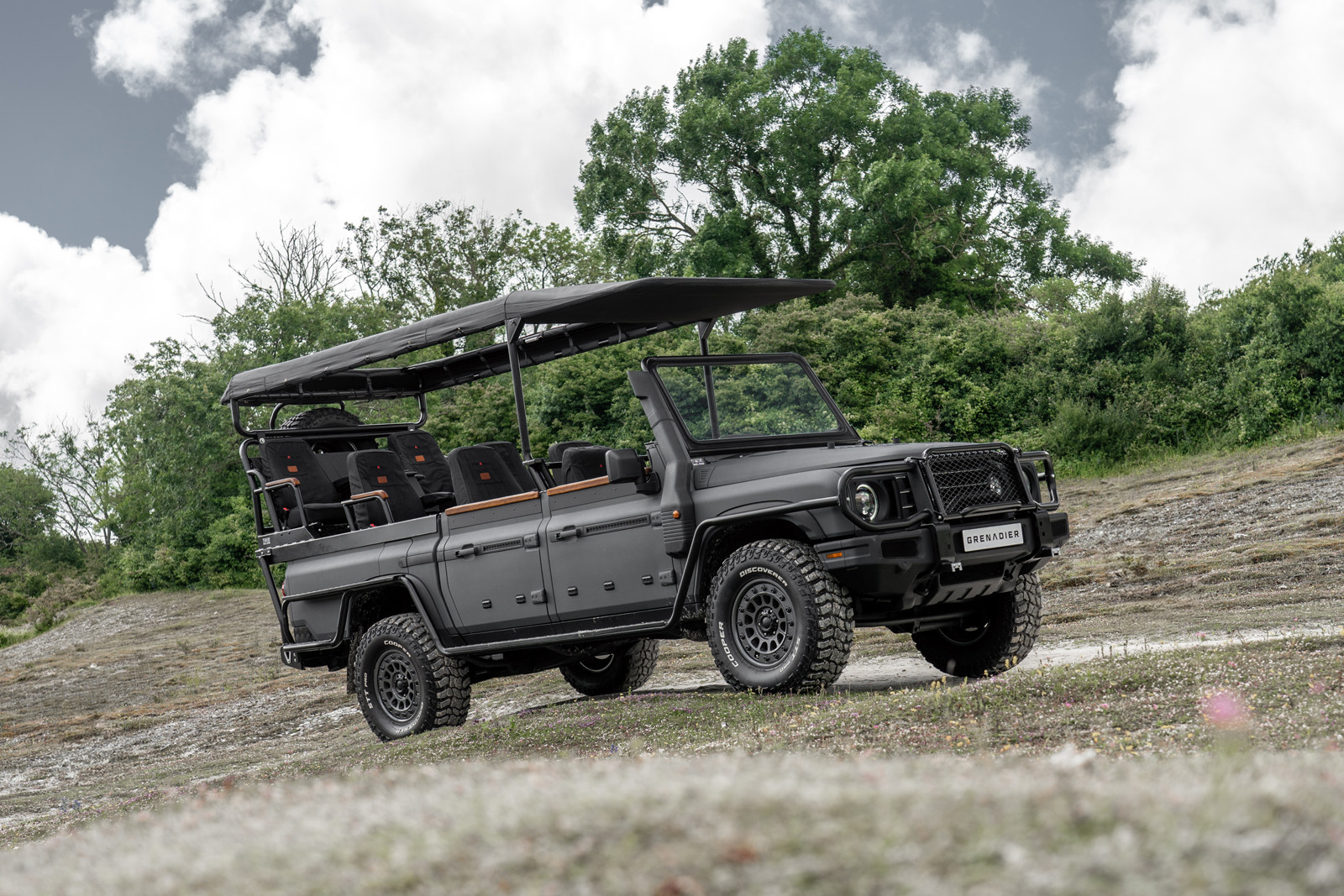 Машины поступают без покраски, задних дверей и задних сидений (передние на месте), а также без бокового остекления, обшивки крыши, различные накладок и ряда электрических элементов. В зависимости от расстояния между осями, багажного отделения и дизайна крыши Grenadier Game Viewer доступен с разной компоновкой салона – количество пассажирских задних сидений варьируется от четырёх до девяти.