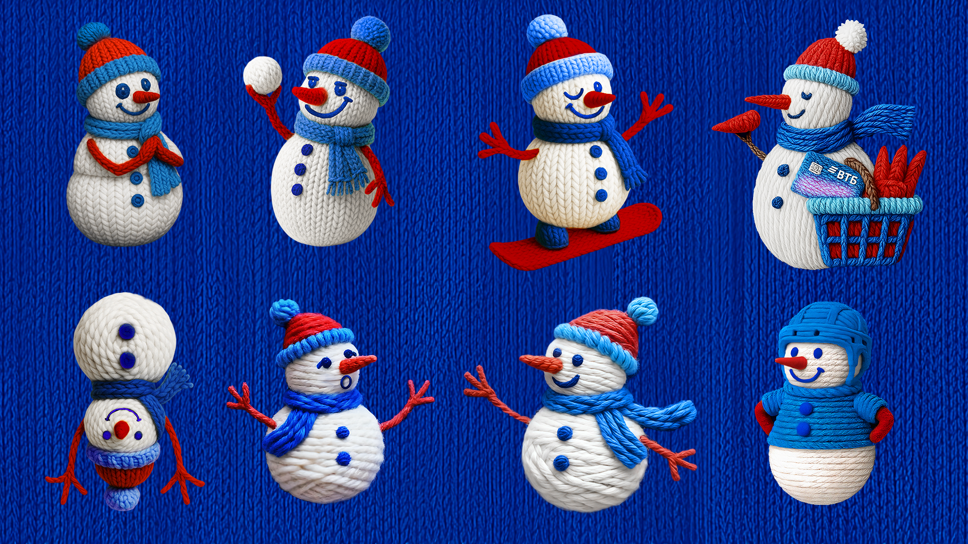 ВТБ в новогоднем проекте создает настроение из уютных мелочей: вязаный синий шарф, еловые ветки, знакомые с детства герои зимних сюжетов и вязаные персонажи.