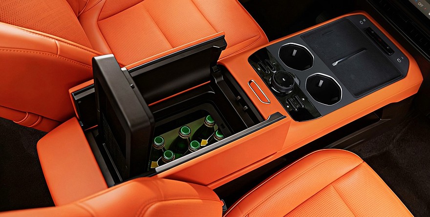 Передняя панель салона оформлена в типично китайском минималистичном стиле, физических кнопок на ней нет. По центру закреплён 15,6-дюймовый мультимедийный планшет с процессором Qualcomm Snapdragon 8255. Приборный экранчик — 8,8-дюймовый, во всех комплектациях, кроме базовой, он дополнен 70-дюймовым проекционным экраном на лобовом стекле. Топовая 1000-ваттная аудиосистема насчитывает 21 динамик. В передней части длинной консоли между передними креслами есть двойной лоток с 50-ваттной беспроводной зарядкой для смартфонов. Объём основного багажники — 497 л, у электрических версий спереди есть дополнительный багажник объёмом 160 л.
