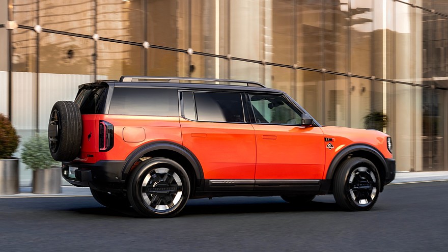 Чисто электрическому Bronco положена батарея ёмкостью 105,4 кВт·ч. Передний электромотор здесь выдаёт 177 л.с., задний — 275 л.с., максимальная совокупная отдача — 452 л.с. (332 кВт) и 575 Нм. Разгон до «сотни» занимает 5,3 с, максимальная скорость — 170 км/ч. Запас хода на одной зарядке — 650 км по циклу CLTC. Минимальная снаряженная масса электрического Bronco составляет 2630 кг, гибридный полегче — от 2510 кг.