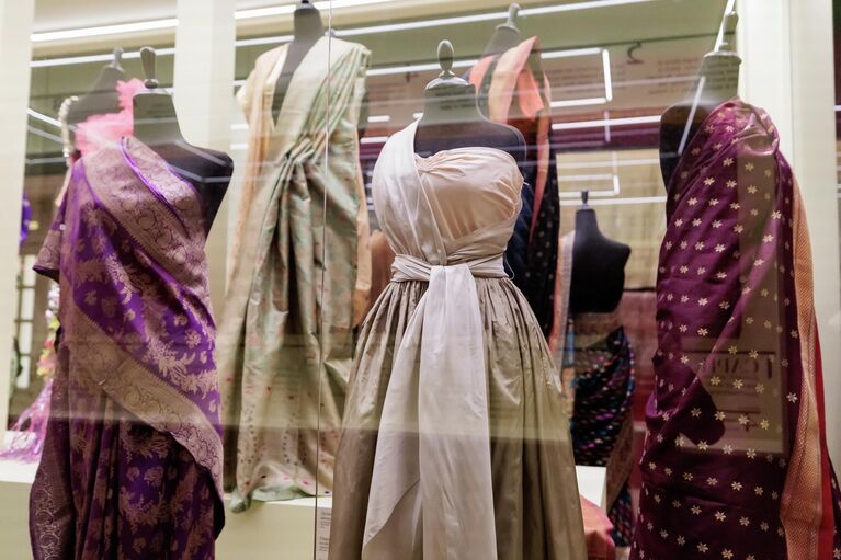 МОСКВА, 24 дек, Светлана Вовк. В Большом дворце музея-заповедника «Царицыно» открылась роскошная выставка «Индия. Ткань времени». Впервые в России представлена коллекция материалов и костюмов Национального музея ремесел в Дели. А еще — красивые винтажные платья и аксессуары самых известных мировых брендов, творения российских дизайнеров, картины, в том числе Анри Ренуара и Винсента Ван Гога. Есть зал психоделики — для медитации и расслабления, а также комната, имитирующая ателье мод, — для мастер-классов. Приготовьтесь провести на экспозиции не один час, потому что все это великолепие ручной вышивки, богатых драпировок, невероятного кроя хочется разглядывать детально, вдыхая специально подобранные для проекта ароматы.