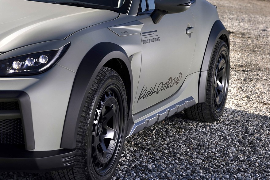 Компания Kuhl традиционно сильна в обвесах, в случае с кросс-купе Kuhl Outroad Toyota GR86 обвес состоит почти из двух десятков позиций. Декоративные детали изготовлены из пластика либо стеклопластика — это новые бамперы, новый капот, накладные пороги, расширители колёсных арок, спойлеры, «тёрка» на заднем стекле и прочая мелочь. Функциональные детали — это кенгурятники (передний и задний) и экспедиционный багажник на крыше со встроенной светодиодной «люстрой». Довершают образ чёрные легкосплавные 18-дюймовые колёса Verz Wheels, имитирующие стальные «штамповки» и обутые во вседорожные шины Yokohama Geolandar.