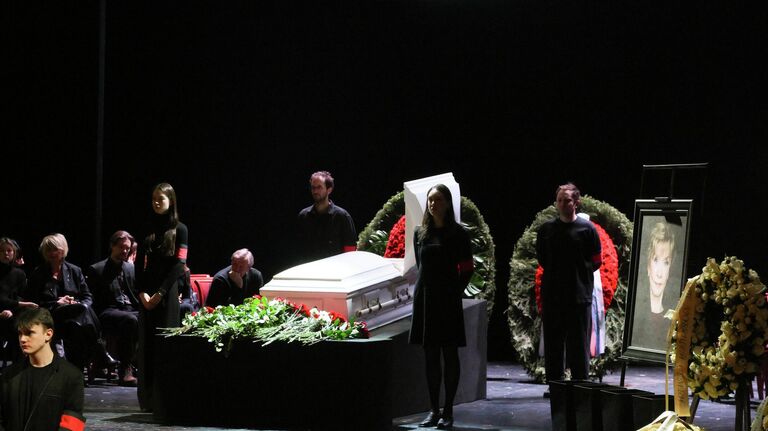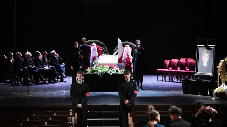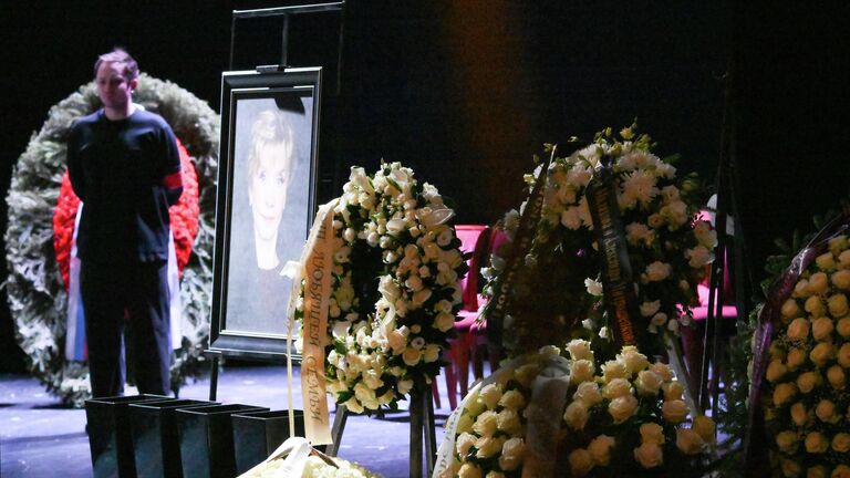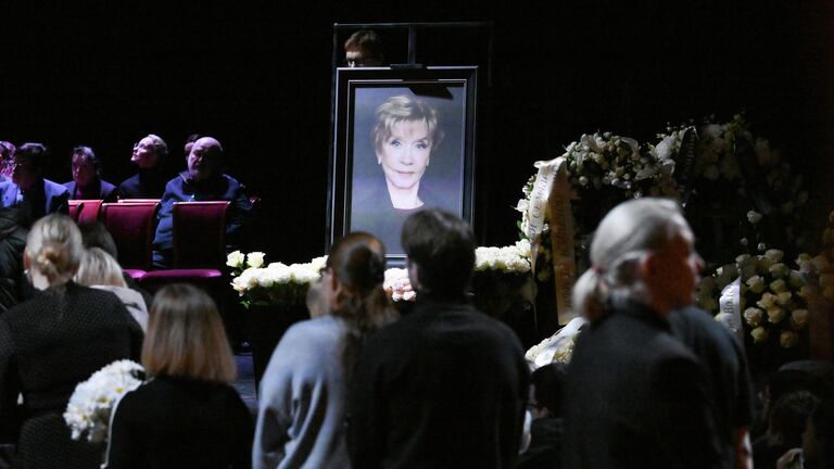 Церемония прощания с актрисой началась в 11.00 мск в театре имени Пушкина. С утра десятки людей несли цветы и собирались у входа, чтобы проводить артистку в последний путь.