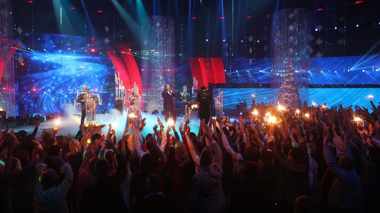 «До и после боя курантов зрителей ожидает красочное путешествие по самым забойным танцевальным хитам последних лет, а также главные песни уходящего года», — сообщил главный продюсер музыкальных и развлекательных программ Первого канала Юрий Аксюта.