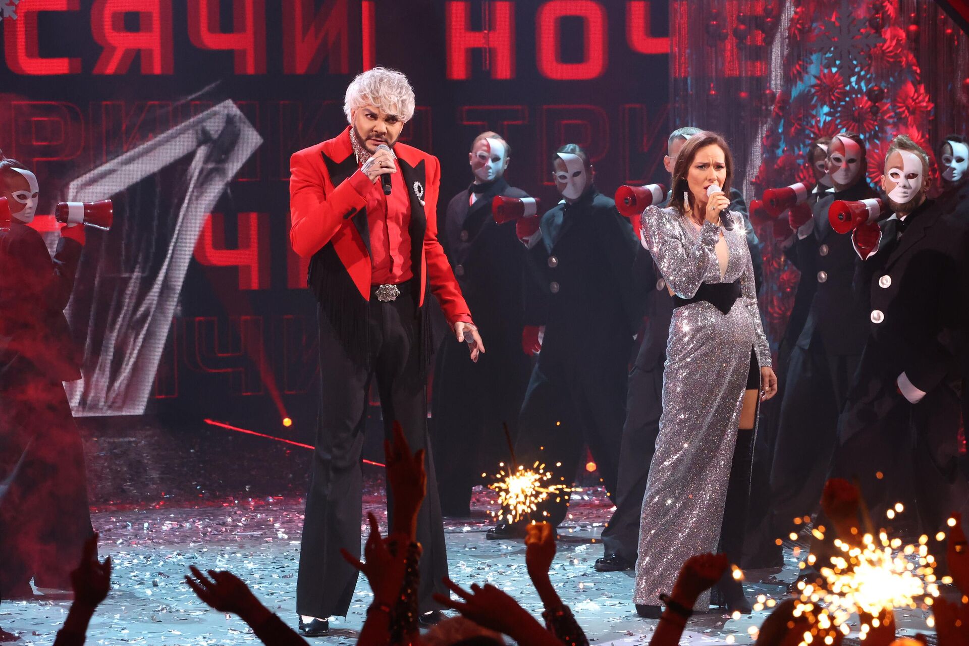 С 21:10 31 декабря на экране сплошные звезды: Надежда Кадышева, Полина Гагарина, Григорий Лепс, SHAMAN, Баста, Сергей Жуков, Стас Михайлов, Валерия, Люся Чеботина, Татьяна Куртукова, Леонид Агутин, Владимир Пресняков, Олег Газманов, Zivert и другие.