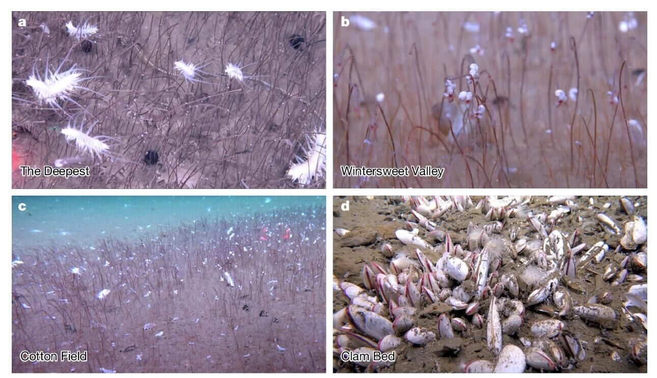 Сообщества живых организмов в этой дальневосточной «преисподней» оказались неожиданно разнообразными, а плотность «населения» — крайне высокой: до 5800 червей и почти 300 моллюсков на квадратный метр. Ученые нашли несколько крупных «полей». На каждом доминируют разные виды, а вместе с ними обитает множество других животных: улитки, морские лилии, голотурии и бокоплавы, которые, вероятно, питаются за счет изобилия химической экосистемы.