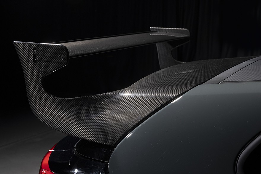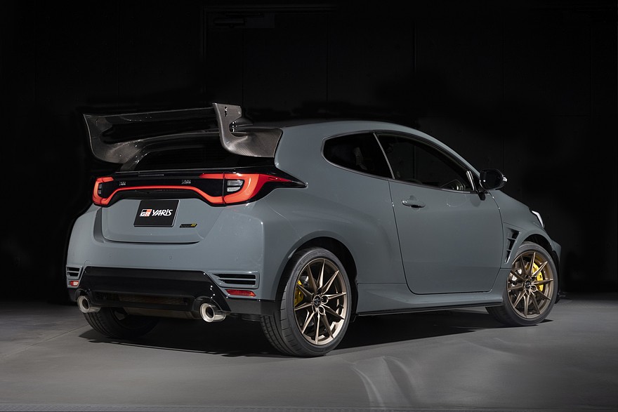 Хэтчбек GR Yaris Morizo RR снабдили модернизированной подвеской, новым аэродинамическим обвесом с иным передним сплиттером, изменёнными боковыми юбками, а на корме у него установлено большое антикрыло из углеволокна, которое создаёт дополнительную прижимную силу. Ещё такой хот-хэтч получил эксклюзивный цвет кузова Gravel Khaki, лёгкий карбоновый капот, колёсные диски в цвете Matte Bronze, за которыми можно разглядеть жёлтые тормозные суппорты.