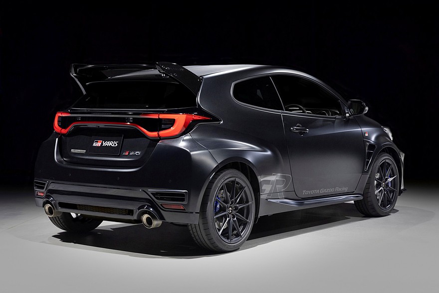 Спецверсия хот-хэтча Toyota получила длинное название – GR Yaris Sébastien Ogier 9x World Champion Edition. В основе этой особенной трёхдверки лежит исполнение Aero Performance Package, переработанное спортивным подразделением Toyota Gazoo Racing. Кузов модели окрашен в чёрный цвет Gravite и украшен особой графикой. Образ дополняют матово-чёрные колёсные диски, за которыми можно разглядеть фирменные синие тормозные суппорты. На передней части рядом с логотипом можно увидеть французский триколор.