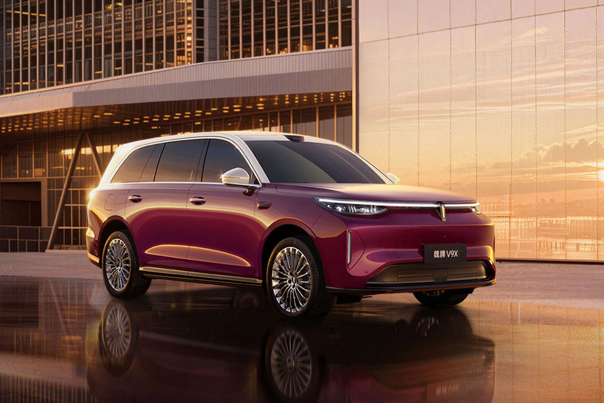 Wey V9X – это полноприводный подзаряжаемый гибрид. Силовая установка включает бензиновый турбомотор 2.0 мощностью 238 л.с. Характеристики электродвигателей все еще не раскрыты. Китайцы пишут, что кроссовер предложат с батареей емкостью 53,6 или 77,7 кВт*ч. Запас хода на электротяге – 240 или 363 км. Судя по всему, эти показатели рассчитаны по циклу WLTC, так как сама компания ранее приводила максимальную дальнобойность в 400 км (видимо, по циклу CLTC).