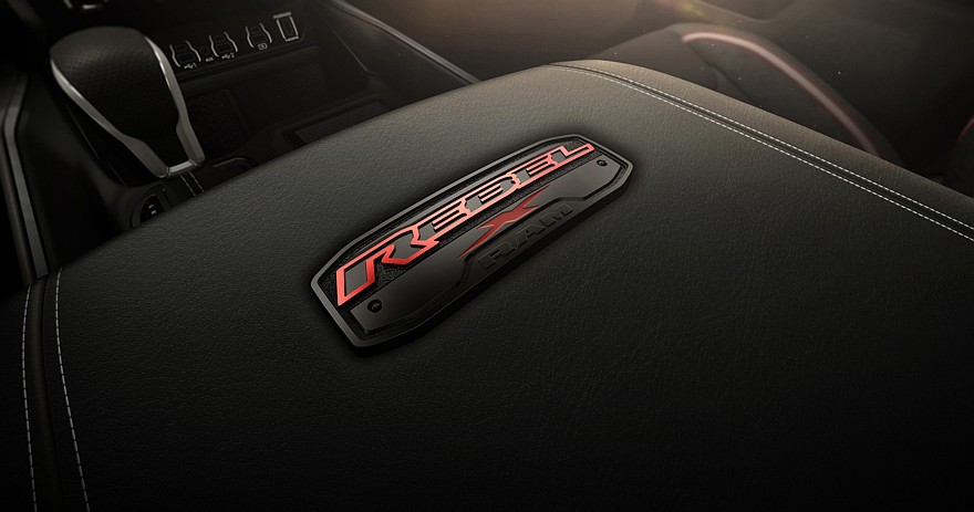 В салоне Ram 1500 Rebel X установлены кресла с подогревом, отделанные кожей и винилом с красной контрастной прострочкой (передние ещё и с вентиляцией, предусмотрены подрулевые переключатели, панорамный люк в крыше, особый декор. На передней панели два дисплея: виртуальная приборка диагональю 12,3 дюйма и тачскрин информационно-развлекательной системы на 14,5 дюйма. Доступны также устройство для беспроводной зарядки смартфонов и аудиосистема Harman Kardon с 19 динамиками.