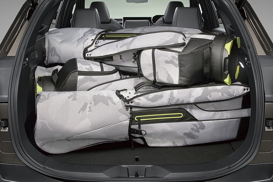 В результате разработчикам удалось увеличить объём багажника в 1,4 раза по сравнению с родственным паркетником. Согласно уточнённым данным, показатель равен 619 литрам (в японской спецификации). А при сложенном заднем диване грузовое пространство можно увеличить до 1240 литров (при расчёте по методу VDA). Багажник снабдили различными крючками и специальными креплениями.