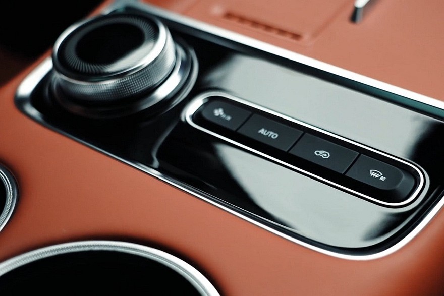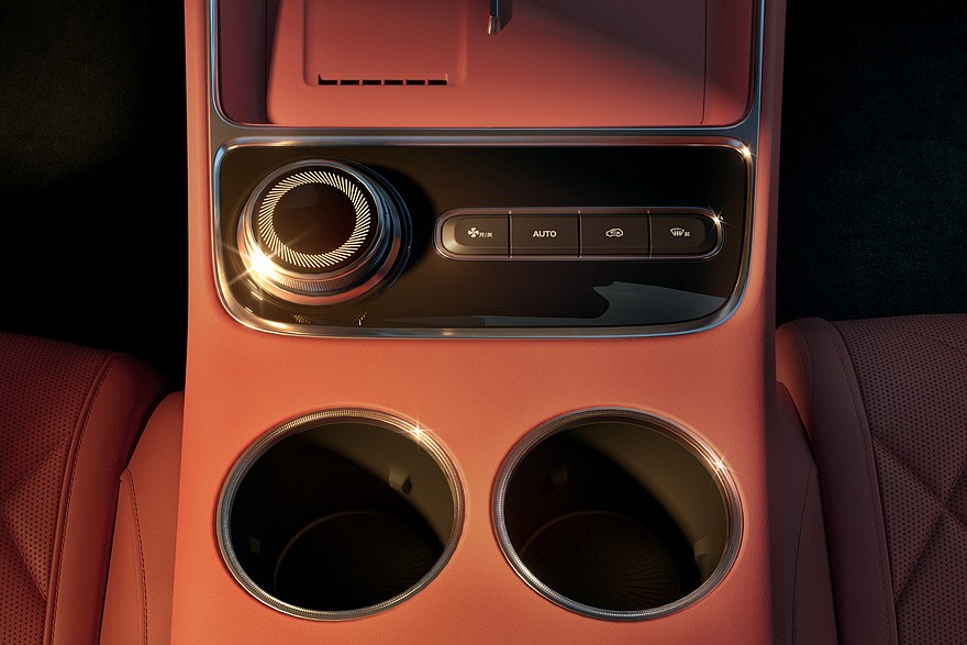 Интерьер для гибрида слегка переделали. В дверях заменили ручки, также иначе оформлены центральные дефлекторы обдува, а на тоннеле появились шайба, ряд кнопок и пара неприкрытых подстаканников. Как и электрокар, гибридный Geely Boyue REV еще имеет виртуальную приборку, мультимедиа-систему с крупным планшетом и площадку для беспроводной зарядки. За управление трансмиссией отвечает подрулевой рычажок.