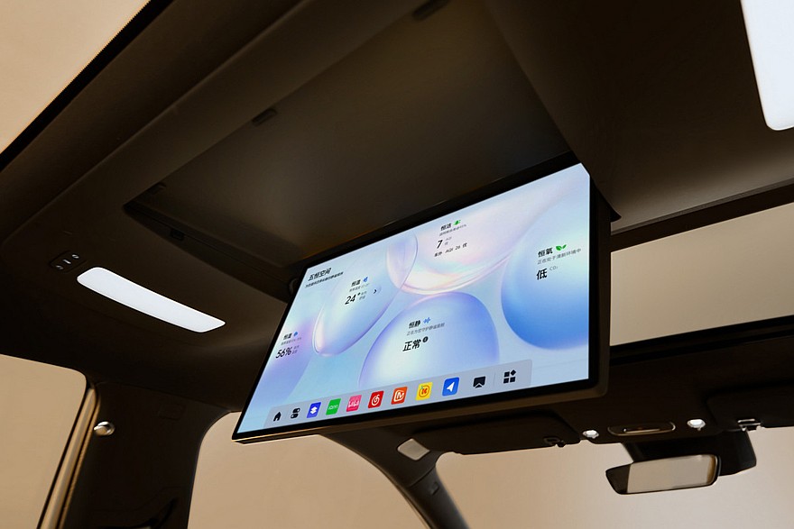 Пятиместный салон оформлен в едином стиле с четырехдверкой серии Electra. И стиль этот для Бьюика новый. Впрочем, марка ориентировалась на предпочтения китайских клиентов, то есть использовала те же лекала, что и остальные местные производители. К лаконичной передней панели Buick Electra E7 прилеплены компактный приборный экран и, наоборот, гигантский планшет мультимедиа (у остальных современных Бьюиков – единое табло). Собственный дисплей есть и у задних пассажиров – как это ныне модно в Китае, он прикреплен к потолку.