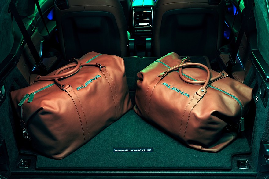 В салоне спецверсии кресла и дверные карты обиты коричневой кожей Tartufo Full Merino, на каждом подголовнике синими и зелёными нитками вышита надпись Alpina. На центральной консоли имеется табличка, напоминающая об ограниченном тираже BMW Alpina XB7 Manufaktur. Передние коврики снабжены объёмными медальонами Alpina. В комплект входят две изготовленными вручную из коричневой кожи Lavalina дорожные сумки Alpina и топовая аудиосистема Bowers & Wilkins.
