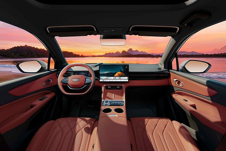 В списке оборудования самого дешевого Geely Boyue REV значатся: упомянутые выше экраны (приборный – диагональю 8,8 дюйма, планшет мультимедиа – диагональю 14,6 дюйма), подогрев водительского кресла, камера заднего вида, обычный круиз-контроль. Остальные две версии имеют беспроводную зарядку, камеры кругового обзора, адаптивный «круиз», системы автоторможения и удержания в полосе движения. Любопытно, что самая богатая комплектация – вовсе не с топовой батареей, а с младшим аккумулятором на 28,3 кВт*ч. Такому паркетнику положены подогрев переднего пассажирского сиденья, массажер и вентиляция передних кресел, панорамная крыша. Часть этих функций для Boyue REV с батареей емкостью 50,4 кВт*ч доступна за доплату, плюс для этого исполнения опционально предусмотрен проекционный дисплей.