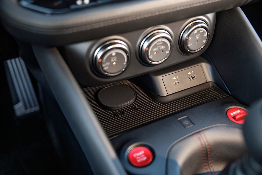 Салон версии Performance теперь доступен с бежевой кожаной обивкой, а общая для всех версий интерьерная обновка — это 15-ваттный лоток беспроводной зарядки для смартфонов, снабжённый вентилятором охлаждения и магнитным креплением.