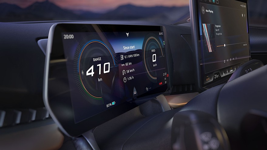 Изменения затронули интерьер кроссовера. У посвежевшего Cupra Tavascan перед водителем располагается новое рулевое колесо с физическими кнопками, а за ним установлен подросший дисплей, исполняющий роль виртуального щитка приборов: его диагональ составляет 10,25 дюйма, тогда как у дореформенной версии показатель составлял всего 5,3 дюйма.
