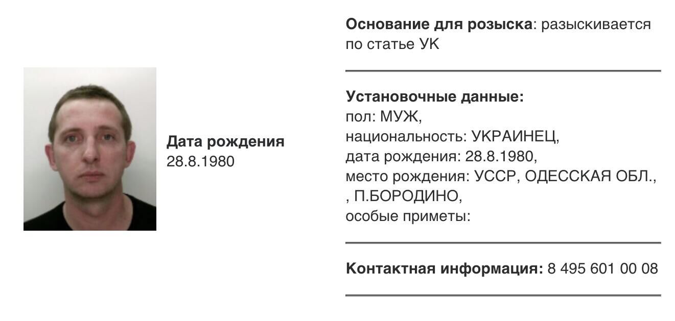«Основание для розыска: разыскивается по статье УК», — говорится в карточке Соловьева в базе розыска.