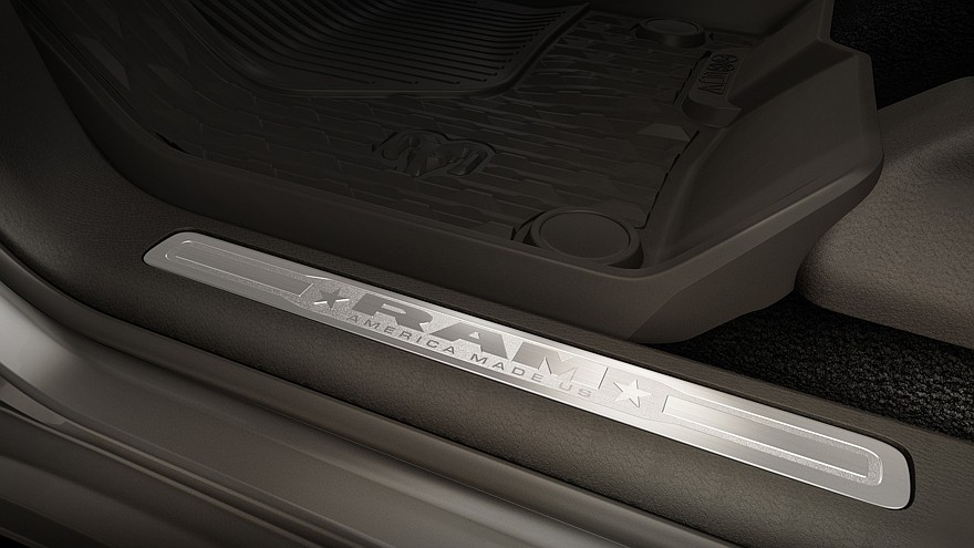Для всех исполнений особенной серии Ram 1500 предусмотрены изменённая графика виртуального щитка приборов, практичные напольные коврики в салоне, а также алюминиевые накладки на пороги и ремни безопасности, выполненные в ярко-красном цвете Ruby Red.