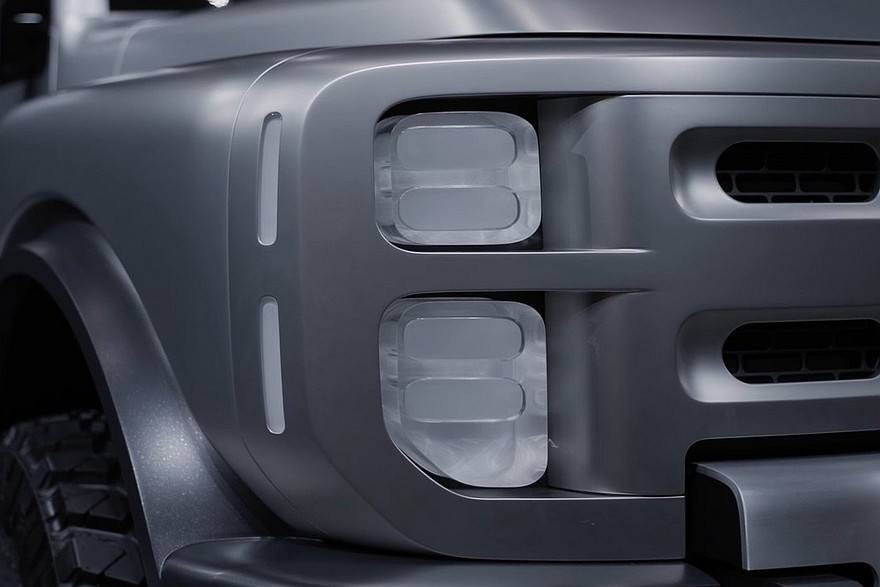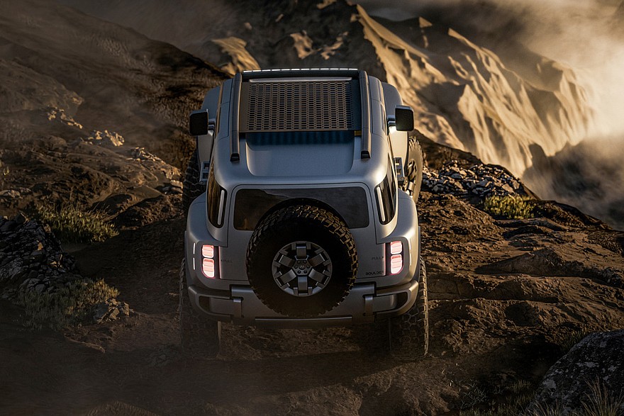 В верхней части дверей есть дополнительные окошки. Распашная багажная дверь с наружной запаской – с «двойными петлями», то есть открывается она в обе стороны. Заднее стекло можно опустить. Наконец, Boulder имеет 37-дюймовые шины. А вот размеры внедорожника компания не раскрыла.