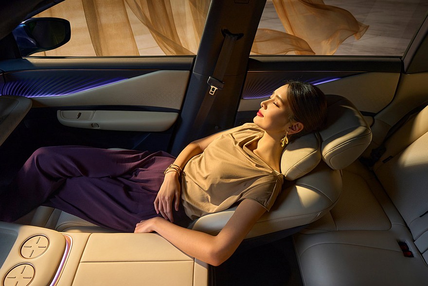 В списке оборудования самых доступных гибрида и электрокара помимо вышеупомянутых экранов значатся: панорамная крыша, кожаная обивка, подогрев, вентиляция и массажер всех сидений, беспроводная зарядка для смартфона, система распознавания лиц, камеры кругового обзора, адаптивный круиз-контроль, системы автоторможения и удержания в полосе движений. В «средних» версиях появляется автопилот, разработанный совместно с компанией Momenta: в частности, он включает лидар над лобовым стеклом и 12 ультразвуковых радаров. Топовый электрический Nissan NX8 – это еще адаптивная подвеска, которая подстраивается под дорожные условия, проекционный дисплей, переднее пассажирское сиденье с откидной подставкой для ног и режимом «нулевой гравитации», аудиосистема с 25 динамиками (включая динамики в подголовнике водительского кресла) вместо 12 в остальных исполнениях, спрятанный в центральном подлокотнике отсек с функциями подогрева и охлаждения.