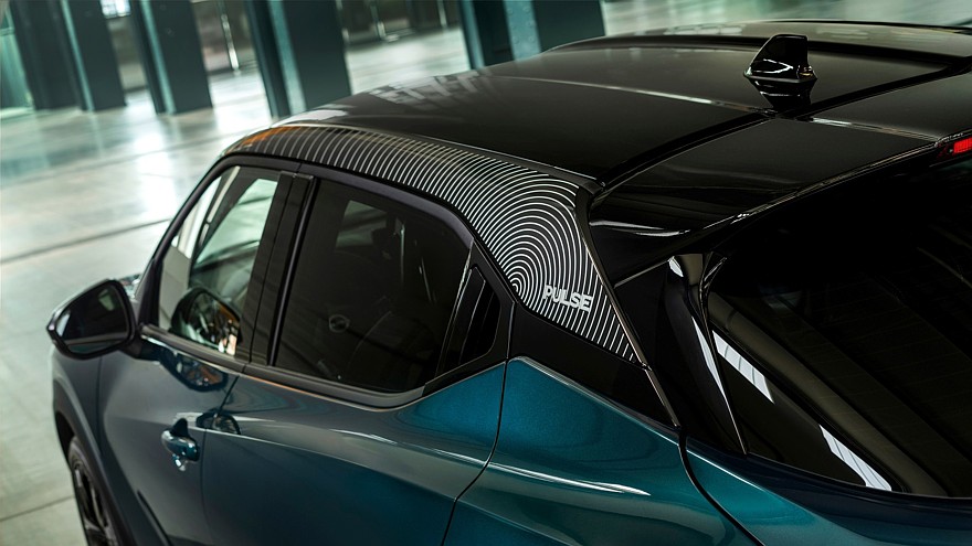 Кузов Nissan Juke Pulse окрашен в новый сине-зелёный цвет Ocean Deep, но крыша при этом чёрная, а её боковые грани расписаны белыми концентрическими окружностями, олицетворяющими звуковую волну. Новые 19-дюймовые литые колёса имеют вставки цвета Ocean Deep.