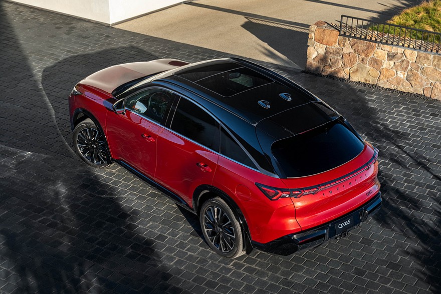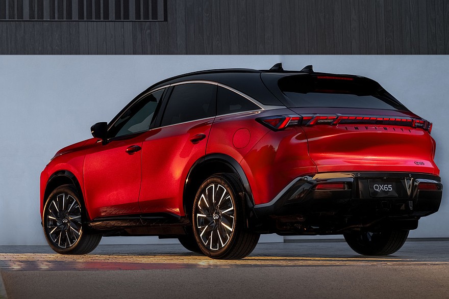 В Infiniti подчеркивают, что QX65 был вдохновлен культовым Infiniti FX (он же QX70 на излете карьеры), который считается основателем сегмента кросс-купе. На деле же это лишь пятиместная версия Infiniti QX60, хотя и со своим дизайном экстерьера. Infiniti QX65 достались двухэтажная головная оптика, оригинальные радиаторная решетка и передний бампер. Разумеется, у него еще другая багажная дверь. А задние фонари сделали в виде плашки с «насечками». Для модели предусмотрены 20- или 21-дюймовые диски.