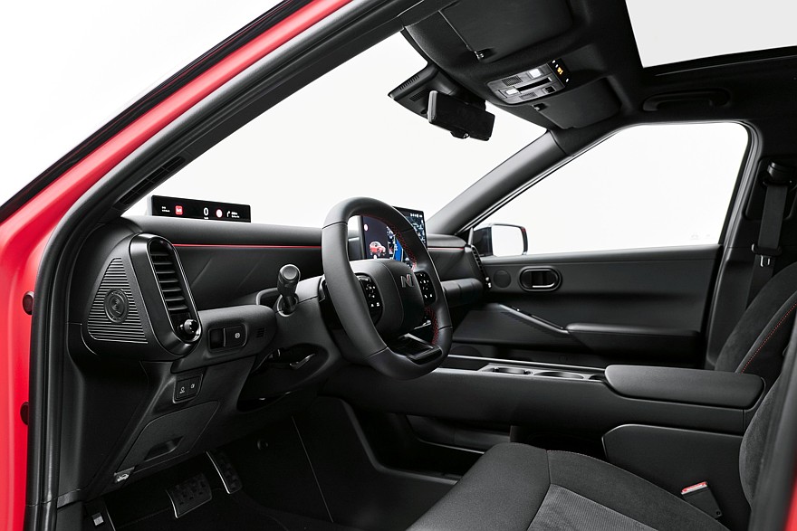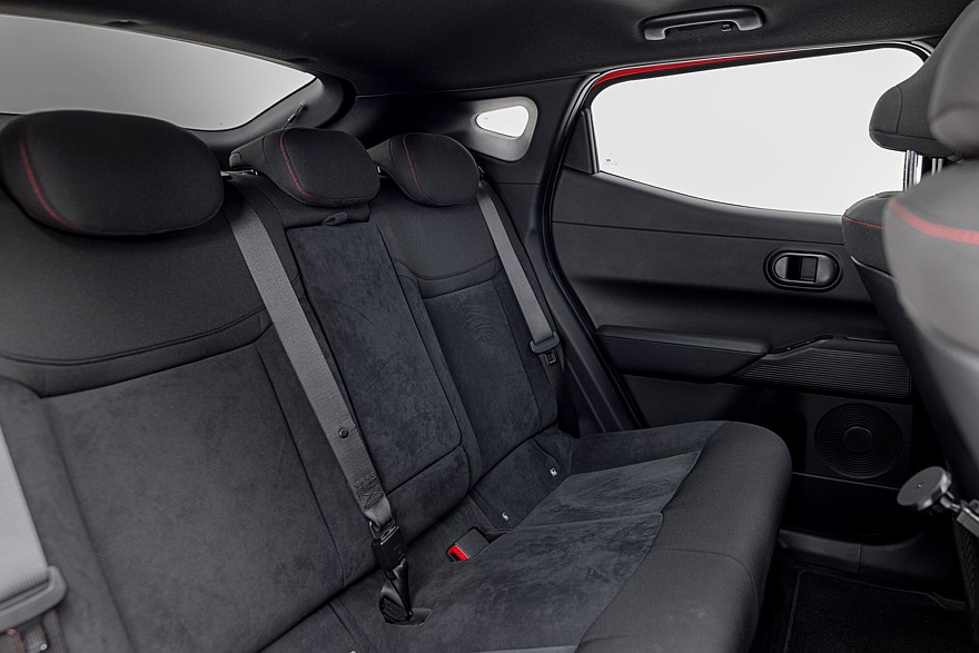 Ioniq 3 адресован молодым семьям, поэтому салон достаточно просторный, с множеством ниш для хранения вещей. Передняя панель представляет собой один большой карман с мягкой обивкой (решение, позаимствованное у Fiat Panda первого поколения). Узенький приборный экран находится над слегка сплюснутым рулём. Мультимедийный экран с операционкой Android Automotive OS может быть 12,9- либо 14,6-дюймовым, под ним разместился компактный блок микроклимата с физическими клавишами. В дорогих версиях будут двухзонный климат-контроль, мощная аудиосистема Bose, передние кресла с вентиляцией и богатый набор электронных ассистентов водителя. Объём багажника — 322 л плюс 119-литровое подполье, именуемое Megabox.