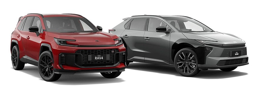 На фото: кроссоверы Toyota RAV4 и bZ4X