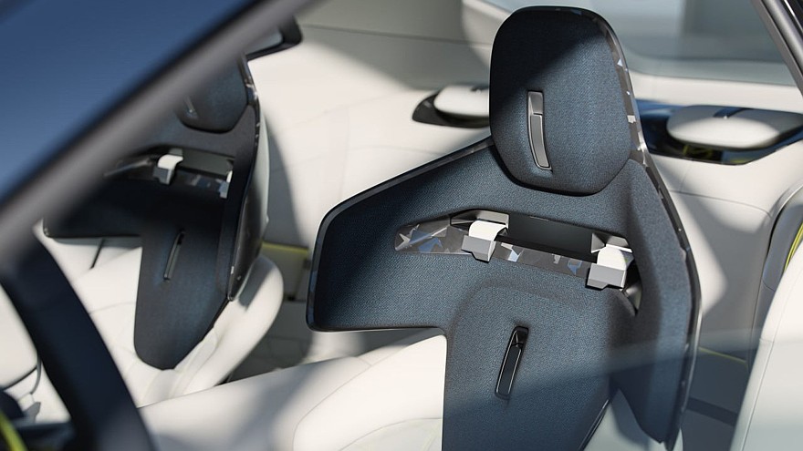 Концепт снабдили пневмоподвеской и активными аэродинамическими элементами, которые расположены как в передней части, так и на корме. В первом случае модель «отращивает» сплиттер и пару вертикальных рёбер (а ещё меняет цвет светового рисунка фар), во втором – активизирует антикрыло на крышке багажника и меняет положение диффузора.